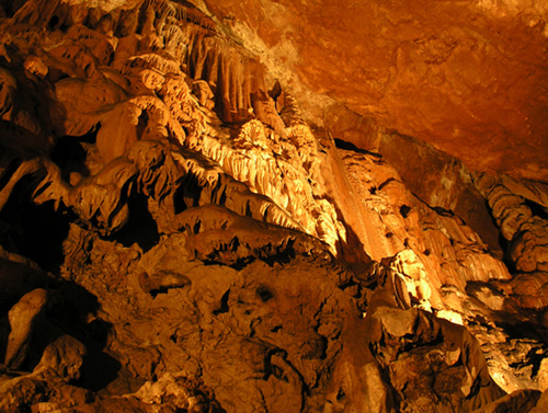 Наплывы и сталагмиты украшают стены.