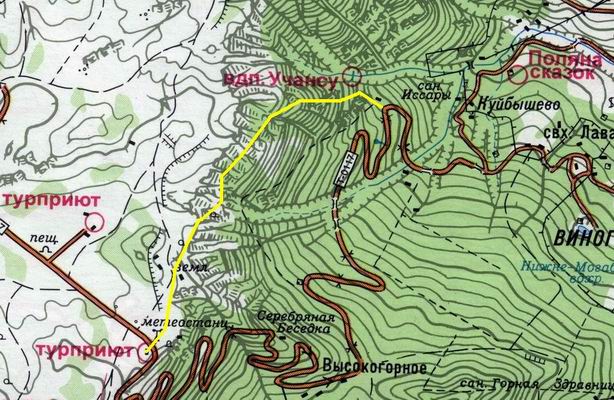 Таракташская тропа — самый быстрый и чрезвычайно живописный пешеходный маршрут с Ай-Петринской яйлы в Ялту. Маршрут начинается вверху, возле приюта «Ай-Петри», и заканчивается у водопада Учан-Су. Спуск при этом достаточно стремительный и требует хорошей обуви и среднего уровня физической подготовки. Общая длина — 8 км (приблизительно 2-2,5 ч). В обратном направлении этому маршруту почти никто не пользуется, потому как есть крутой подъем. А подняться на Ай-Петри можно с помощью канатной дороги из Мисхора. Следовательно, от приюта идете по трассе в сторону Бахчисарая около 100 метров, затем, поворачиваете направо, проходите мимо домика лесника. Через 15 — 20 минут снова поворот направо — с дороги на тропинку, которая выведет на южный склон Главной гряды. Отсюда и начинается крутой спуск к водопаду Учан-Су.